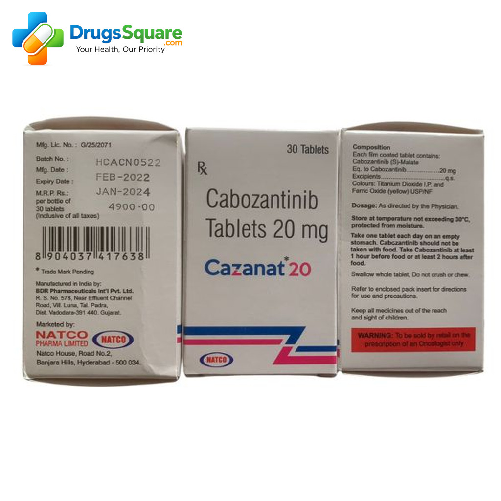When you buy Cabozantinib 20 mg Tablet online from an Indian Online Pharmacy like Drugs Square, you benefit from competitive pricing, international quality assured manufacturing standards like FDA & WHO-GMP, Structured prescription verification process, secure eCommerce transaction system and a structured international supply process designed for prescription medicines.