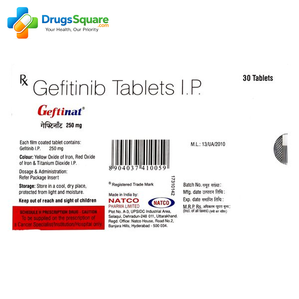 When you buy Gefitinib 250 mg Tablets online from an Indian Online Pharmacy like Drugs Square, you benefit from competitive pricing, international quality assured manufacturing standards like FDA & WHO-GMP, Structured prescription verification process, secure eCommerce transaction system and a structured international supply process designed for prescription medicines.