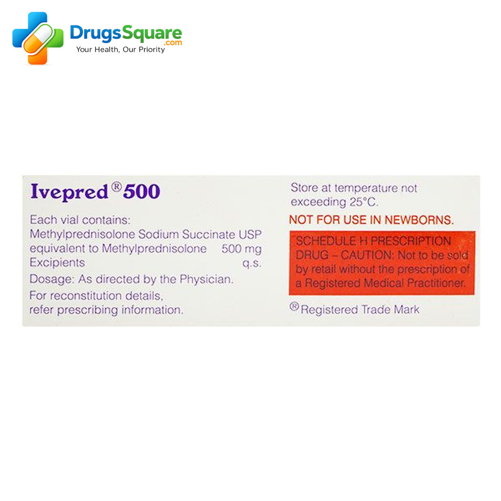 When you buy Ivepred 500mg Injection online from an Indian Online Pharmacy like Drugs Square, you benefit from competitive pricing, international quality assured manufacturing standards like FDA & WHO-GMP, Structured prescription verification process, secure eCommerce transaction system and a structured international supply process designed for prescription medicines.